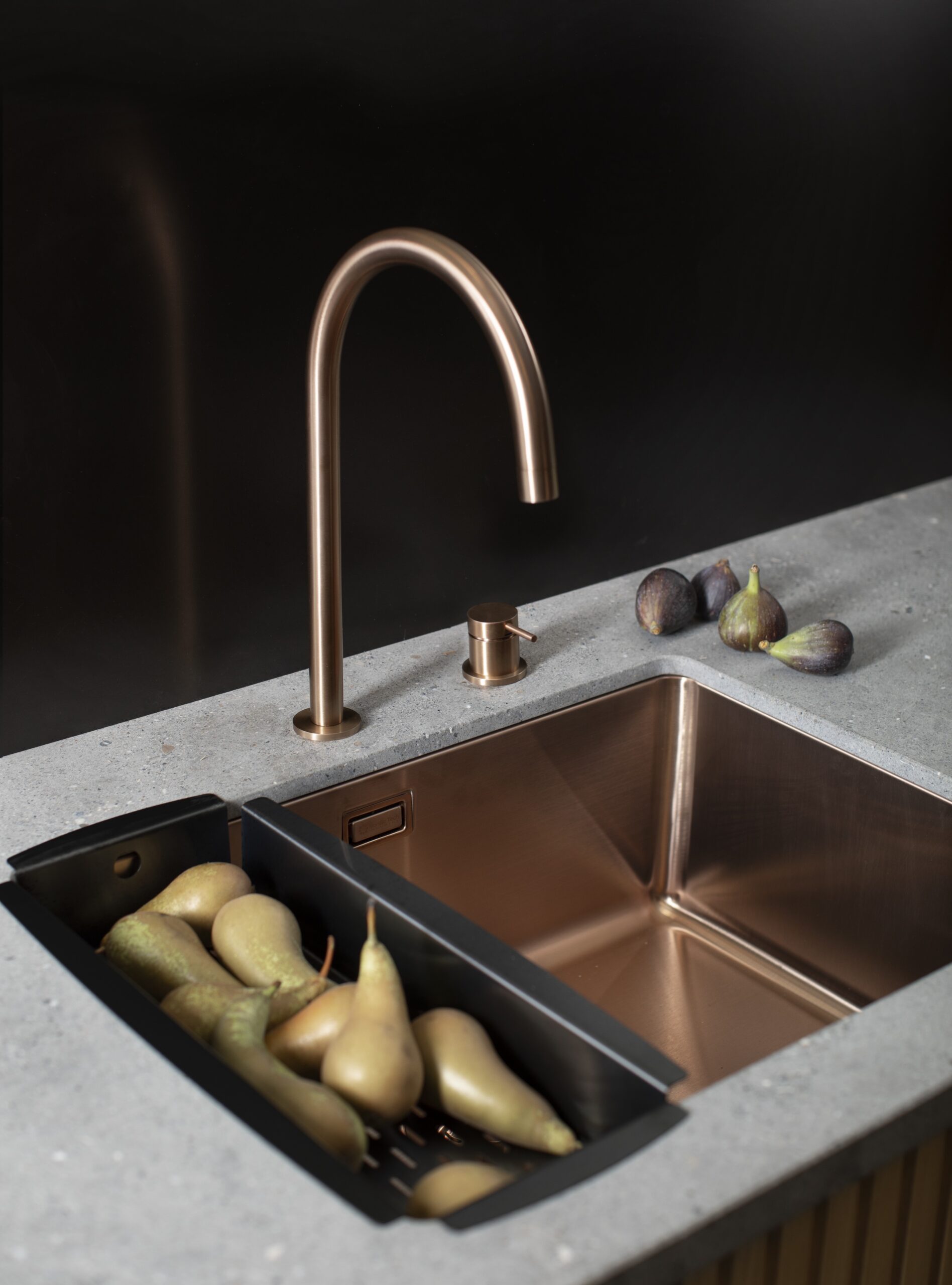 Förutom diskhoar och blandare erbjuder vi ett urval av smarta tillbehör som hjälper dig att fullända din köksbänk. Med vår sköljskål i färgserien Bronze slipper du otympliga durkslag som tar upp plats i köksskåpen och kan smidigt skölja disk, frukt och grönsaker med minimalt vattenspill. Som ett komplement till din köksblandare kan du även installera en sparsam diskmedelspump i samma färg som enkelt fylls på ovanifrån. Utforska våra tillbehör och skapa en enhetlig känsla i din nya köksmiljö.